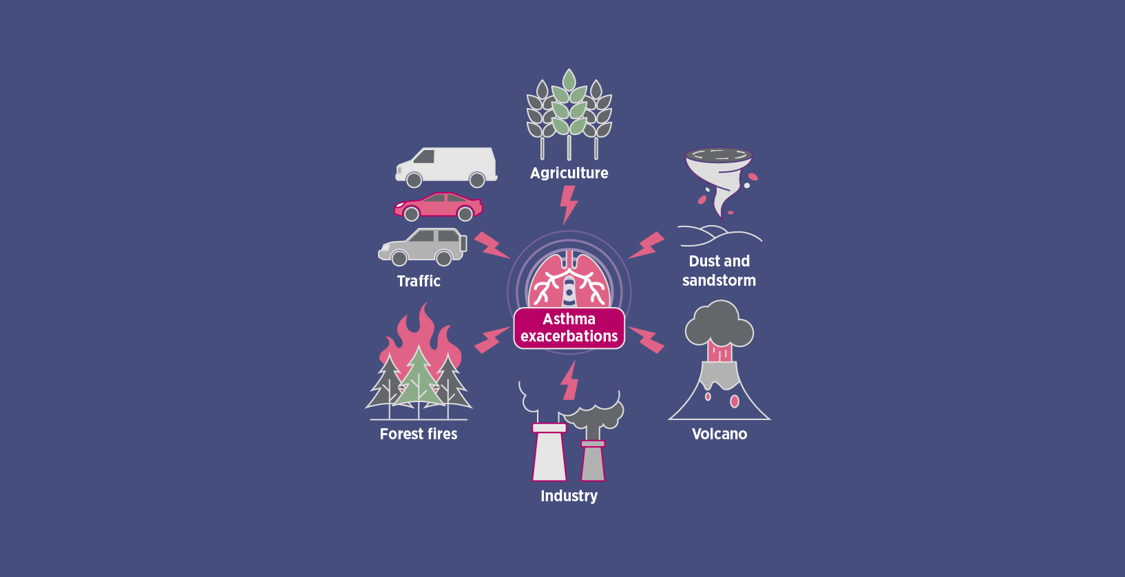 Short-term increases in fine particulate matter during wildfire seasons were associated with an increased risk of emergency visits and inpatient admissions. The risk was greater during wildfire seasons than in the season when there were temperature inversions that trap pollution. For COPD, the risk of hospitalization was only weakly associated with changes in fine particulate matter.