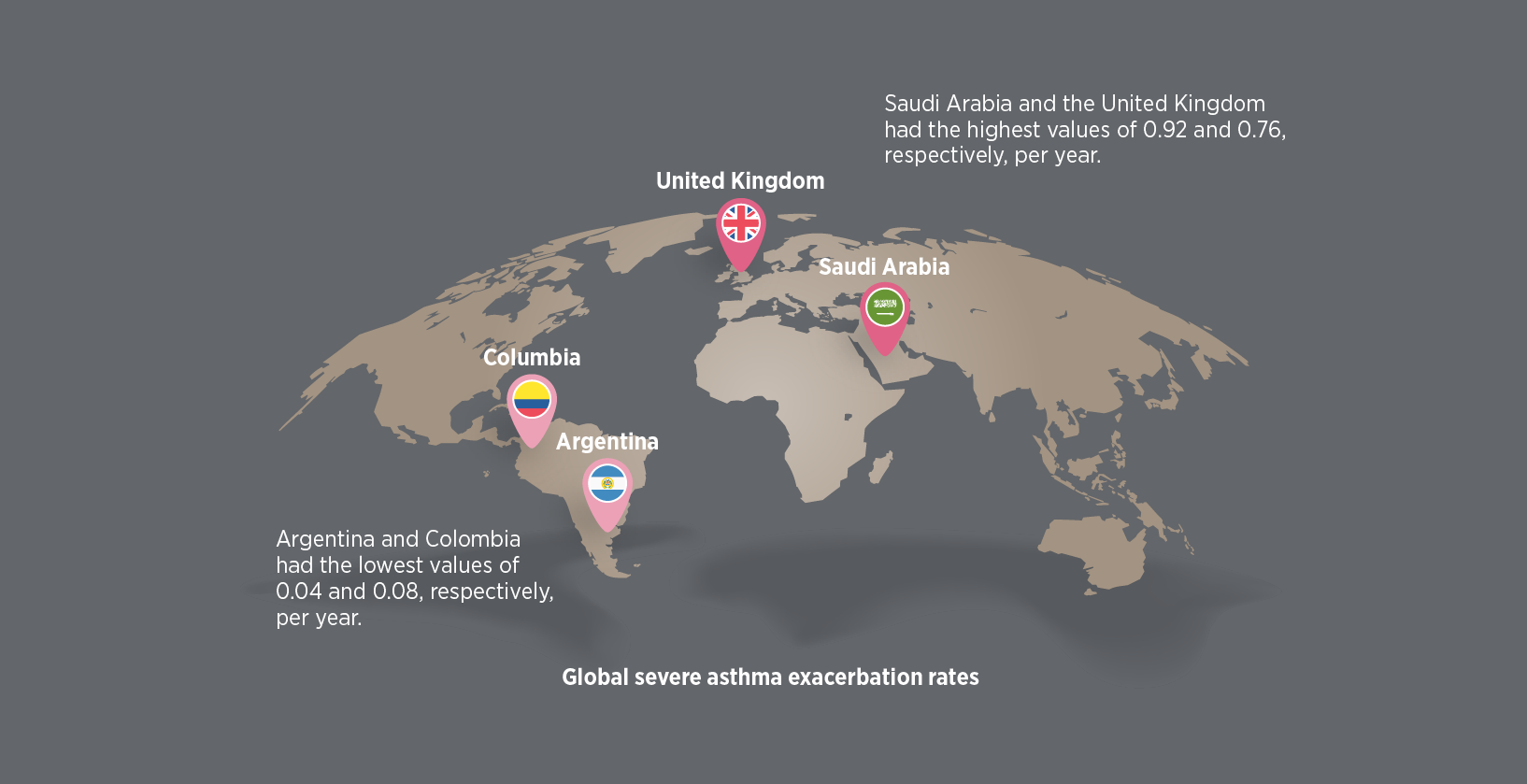 Unknown or unmeasured patient factors or system-level variation may be driving the heterogeneity in rates across countries. Investigating the causes may help improve the management of asthma. Nevertheless, the findings question the merit of a 'one size fits all' treatment approach and suggest that clinical recommendations for severe asthma are adapted by countries for their settings.