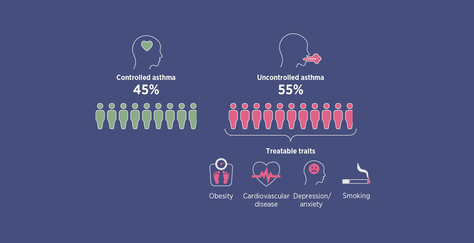 Over 50% of patients treated for mild to moderate asthma had uncontrolled asthma in a study in Sweden. These patients may be undertreated or have treatable traits that negatively affect asthma control. Holistic management could help treat uncontrolled asthma and may reduce the risk of future exacerbations.