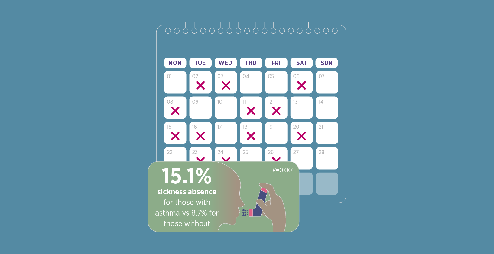 Sickness absence for adults who were 24 years old was more common for those with asthma than those without, particularly in cases of persistent or uncontrolled asthma and asthma in combination with rhinitis. Additionally, productivity losses were a third higher for young adults with asthma and more than double if they had uncontrolled asthma.